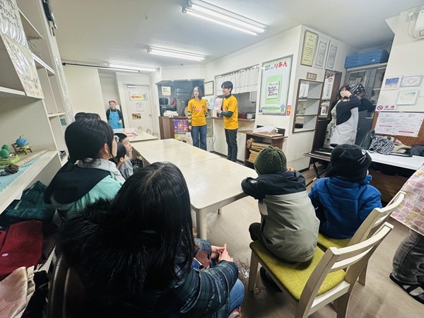2026年最初のonちゃんおはなし隊は、札幌市北区にある「麻生キッチンりあん」。学校終わりの子どもたちが集まる「子ども食堂」で、読み聞かせを行いました。