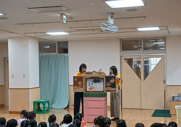 HTBアナウンス部では、幼稚園や各種施設などを訪問して絵本や紙芝居の「読み聞かせ」を行う
