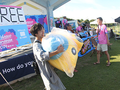 ①八峰町PRブース(地域おこし協力隊)では地元産品の販売をします。アンケートに答えて頂くと抽選に参加でき、この店舗で使える割引券などが当たります。