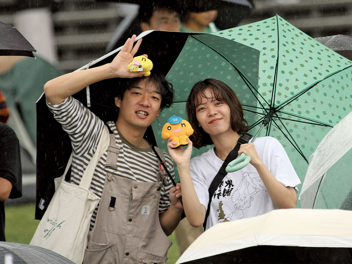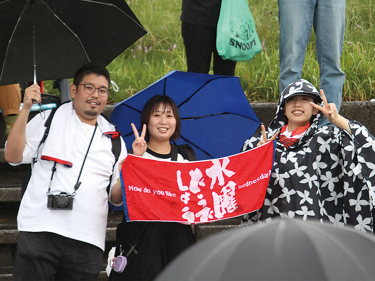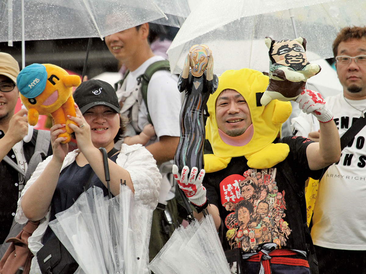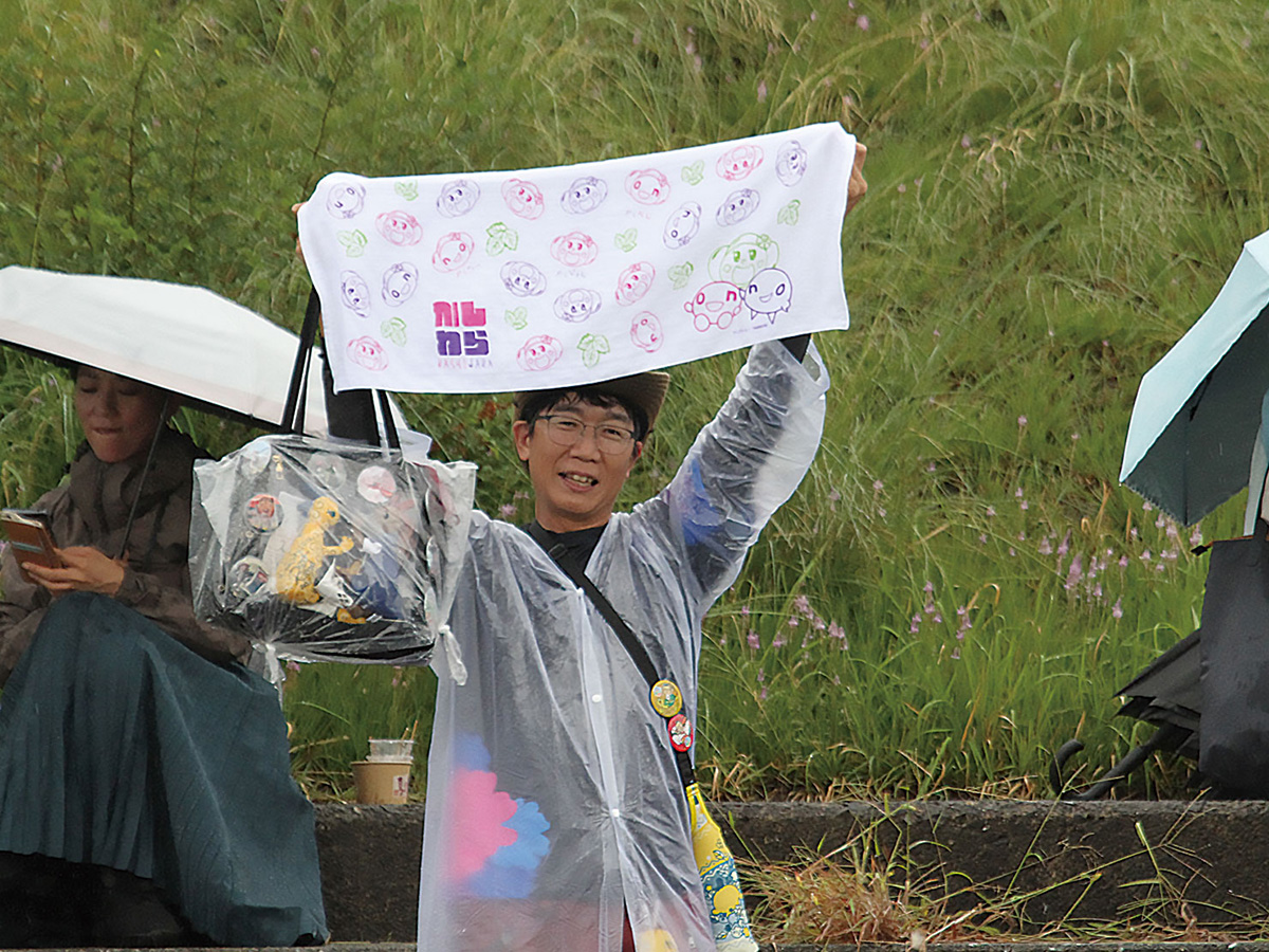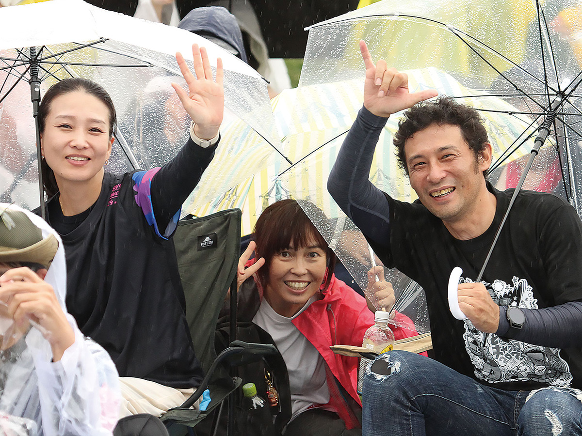 日除けを目的とした小テントは可。但し、小テントを設置する場合は、ステージに向かって後方での設置をお願いします。