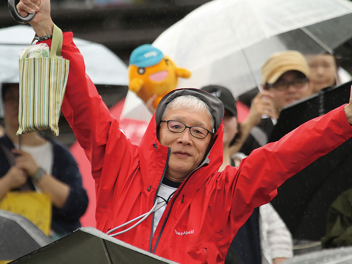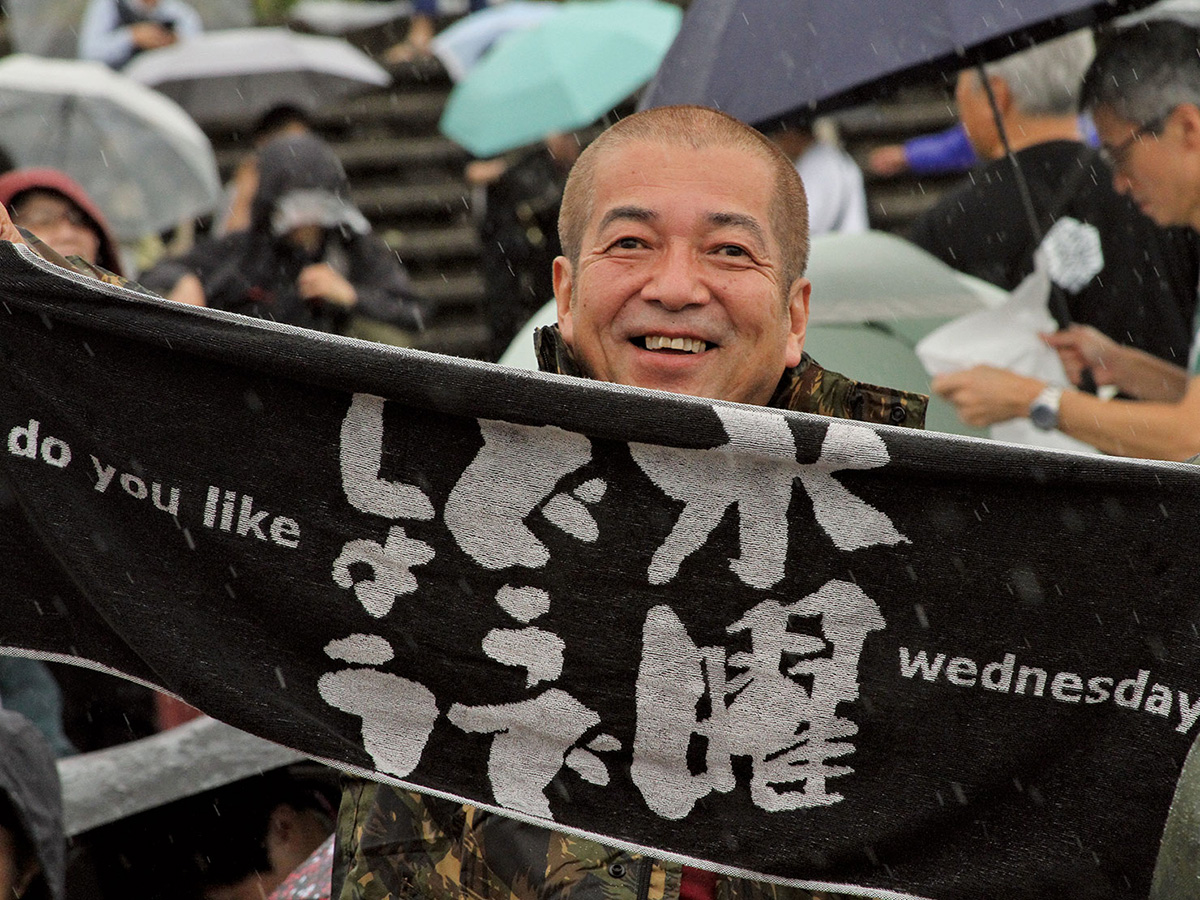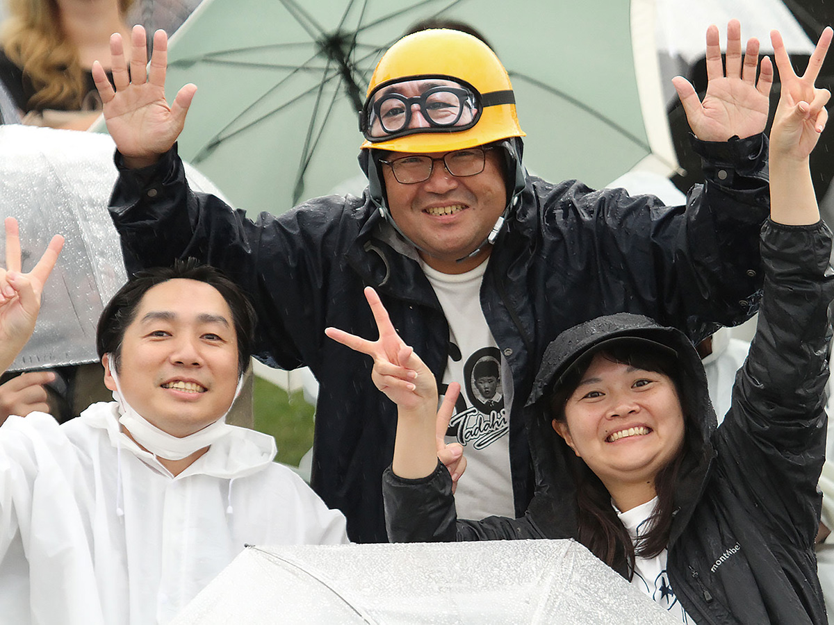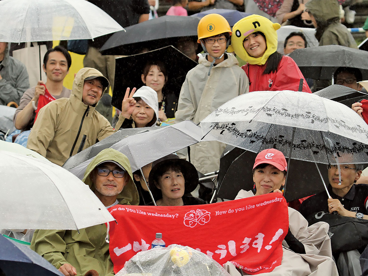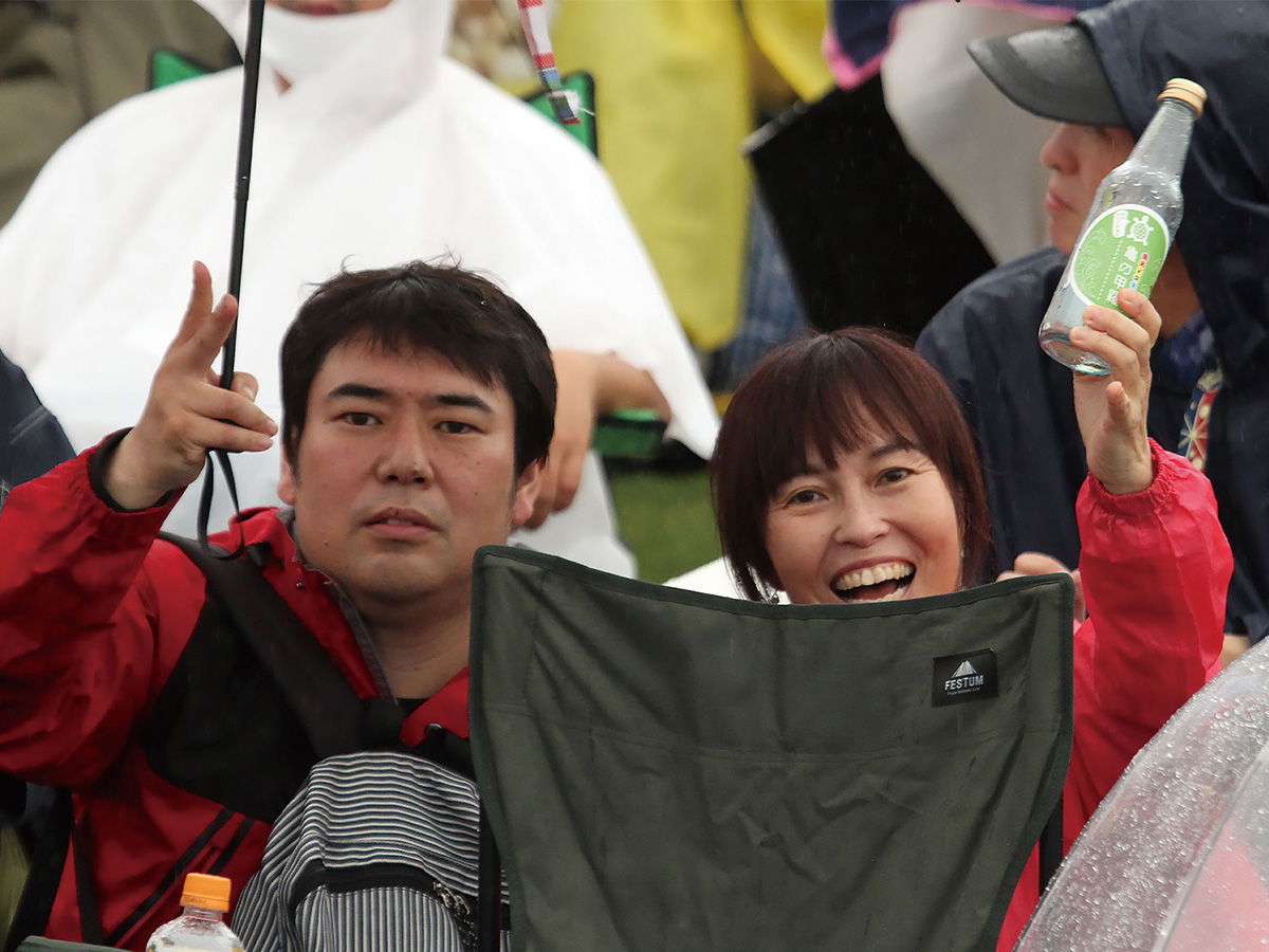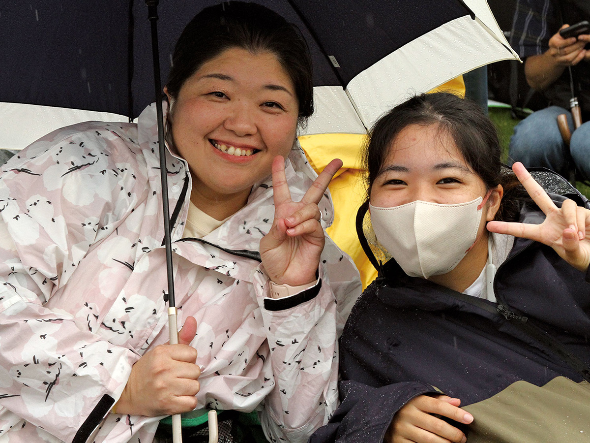 日除けを目的とした小テントは可。但し、小テントを設置する場合は、ステージに向かって後方での設置をお願いします。