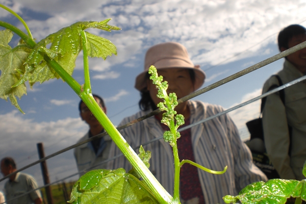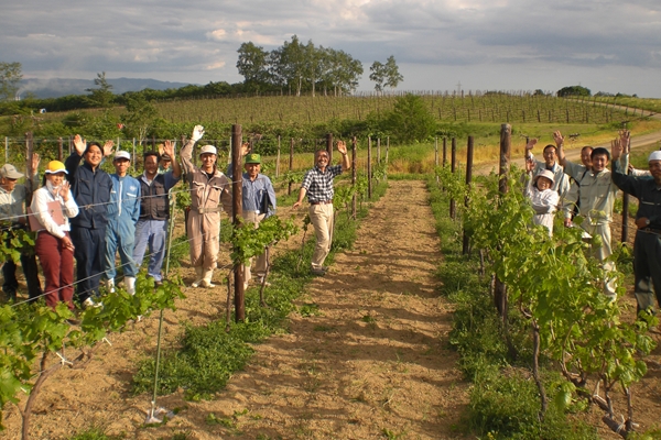 ちょうど研修で集まっていた鶴沼ワイナリーの今村社長と生産者の皆さん。