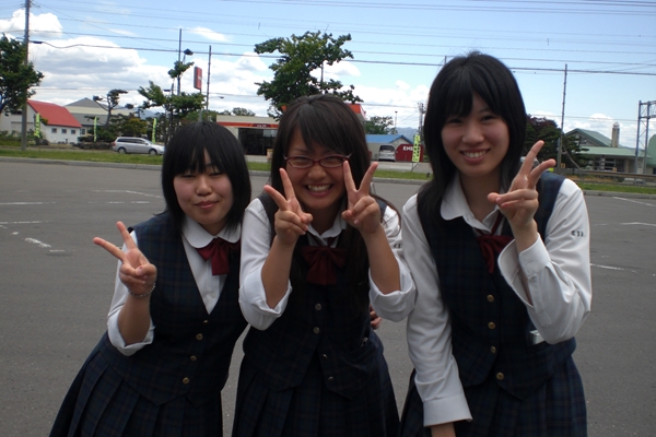 道の駅で出会った女子高生3人組。「森崎さん?知りません」と素直な反応(笑)