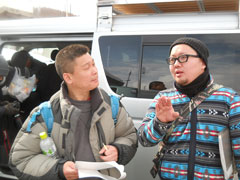 真剣にロケの打ち合わせをするコラアゲンさん&南部D