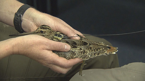 夏は北海道で繁殖し、冬はオーストラリアで過ごすがどのように渡っているのかはわかっていない。2016年夏、日・豪の鳥類研究者が小型の衛星発信機をオオジシギに装着させ、世界で初めて渡りのルートを追跡する調査に臨んだ。