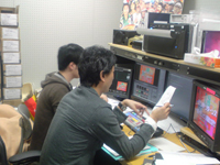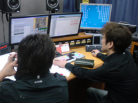 まだまだ編集中のキャップチームと並行して 、編集済み企画から順にチェック行程に入ります。チェック行程では、文字まちがい・ノイズなどがないか、DVDの再生技術としてまずい編集はないかを確認します。