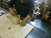 そこに同じ幅に切られた『鉄の歯』をハンマーではめ込んでいきます。