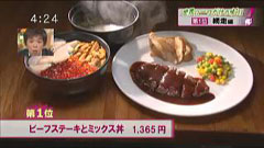 ▽上質な牛モモ肉にサッパリとしたソースがベストマッチ。そしてミックス丼には標津産のイクラに湧別産の肉厚なホタテを使用し、さらに蒸しウニを贅沢にのせてボリューム満点です。