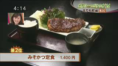 ▽200gのトンカツに特製の3つの味噌をブレンドしたソースをかけたボリュームあるメニューです。