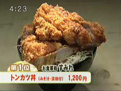 ▽トンカツはおよそ700グラム!サクサクのトンカツに、そばダシをベースにした特製の甘い和風ダレが食欲をそそるデカ盛り丼です。