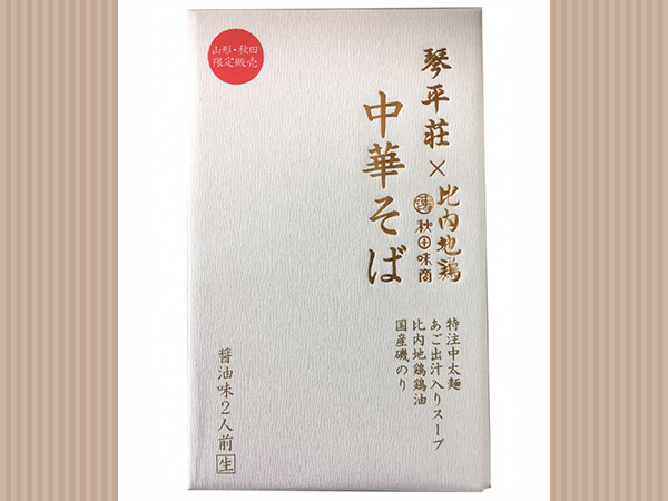 日本有数のラーメン激戦区、山形県において、連日行列を作る人気ラーメン店「琴平荘(こんぴらそう)」。琴平荘の特徴でもある「アゴ」と呼ばれるトビウオの出汁と、様々な魚介と豚・鶏等の旨みを幾層にも重ねた醤油スープに、バターのような芳醇な甘みの比内地鶏の鶏油を加えています。「家で食べるラーメンと思えないようなクオリティ」とラーメン好きの間でも絶賛、秋田県内でも大変な人気商品です。秋田県、山形県の地域限定品が、北海道に初登場。200個限定です。【きりたんぽ・比内地鶏スープセット】