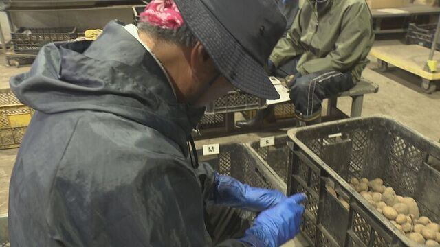 ■アンビシャスファーム伊藤麻起子さん「サイズで分けて来年植えるための種イモを取ってから販売用で出します。Sサイズが植えるやつです。小さすぎると芽が少なくて芽が出なかったりするので一番いい大きさのサイズを種にとっている」