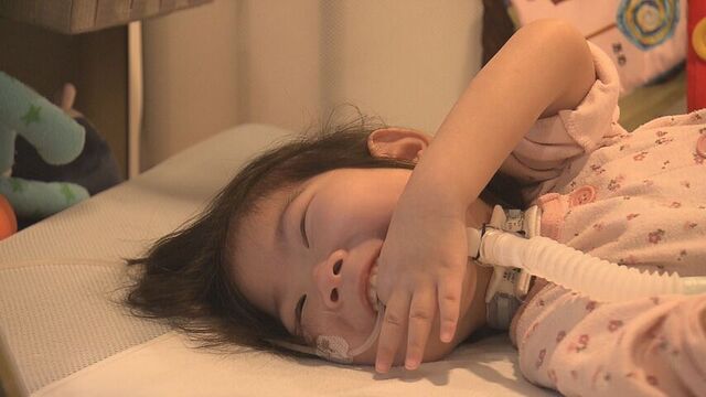 人工呼吸器や胃の栄養チューブを使って生活する医療的ケア児。