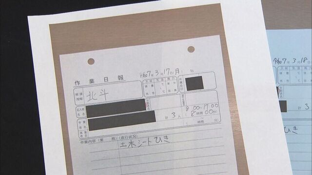 これは、日本エコロジーが道に提出した作業日報です。着工日である3月17日には、「土木シートひき」を行ったと記録されています。しかし、3月17日の釧路市は、暴風雪警報が発表されるほど大荒れの天気で、土木シートを敷く作業はできなかったはずだと、木村市議は主張します。