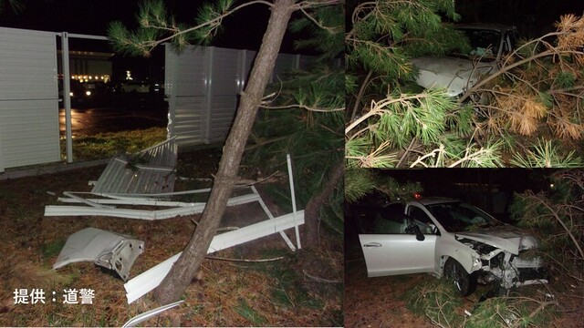 「アクセルとブレーキ踏み間違えた」登別市で80代女性が運転する車が柵をなぎ倒し木に衝突、軽傷