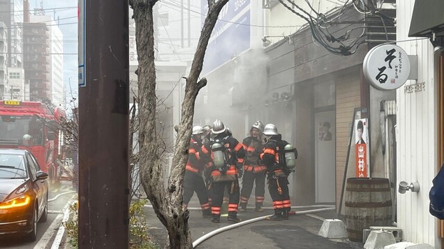 【速報】函館市本町の木造2階建て建物で火事 五稜郭エリアの繁華街 煙も蔓延し現場騒然 現在消火活動中