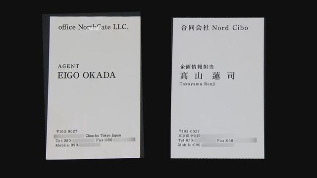 こちらは、岡田容疑者が持ち歩いていたという「高山蓮司」という名刺です。ローマ字表記の「EIGO OKADA」の名刺と比べてみると、住所や電話番号が全く同じです。