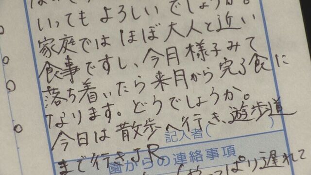 母・南さん「1歳になる前ぐらいに、土日で食べられるものを増やしてきてくださいっていう風に言われていたんですよね。ちょっと本当に飲み込めるような大きさにカットして作ってあげて、(離乳食一覧に)丸付けてっていう風にしていました」