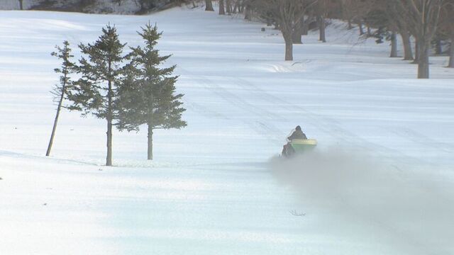 もうすぐゴルフシーズン 30センチの雪残るコースに融雪剤散布 北海道伊達市