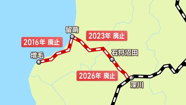 JR北海道は、2016年に留萌~増毛間、2023年に石狩沼田~留萌間を廃止。唯一残った深川~石狩沼田間での営業を終了し、留萌線はあす(4月1日)、全線廃止となります。