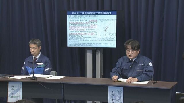 気象庁は青森県で震度5強を観測した今回の地震を受け「北海道・三陸沖後発地震注意情報」を発表しました。