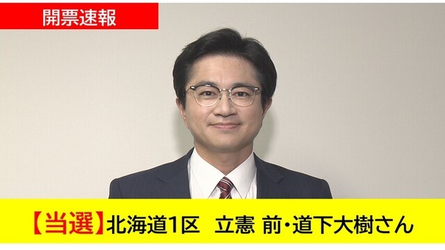 【開票速報】北海道1区 立憲 前・道下大樹さん 当選