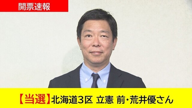 【開票速報】北海道3区 立憲 前・荒井優さん 当選