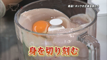 切り身をフードプロセッサーに入れ卵と一緒に切り刻む。