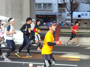 「たあ~く~ん、たあ~く~ん」と35km地点で叫んでいました、大阪のおばちゃんです。疲れておられたのでしょうが終盤にも関わらず安定したスピードで走る姿に驚きと同時に感動し、ただのヒゲではなかったんだと見直しました。(どうじに見つけた我が旦那は追いかけて2、3枚撮ったらしいのですが他のランナーとかぶりショックを受けています)
