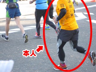 ゴール手前の藤村さん 混雑の中背伸びをしてシャッターを押していたら藤村さんの頭が見事に写りませんでした。顔は見えませんが藤村さんに間違いありません。