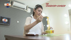 室蘭のご当地グルメ、カレーラーメンの味を忠実に再現するため、室蘭カレーラーメンの会監修の元、開発されたスパイシーなインスタントラーメン。食べたセリさんもスパイシーなスープに驚き、気に入った様子。モチモチした太麺もスープによく合います。